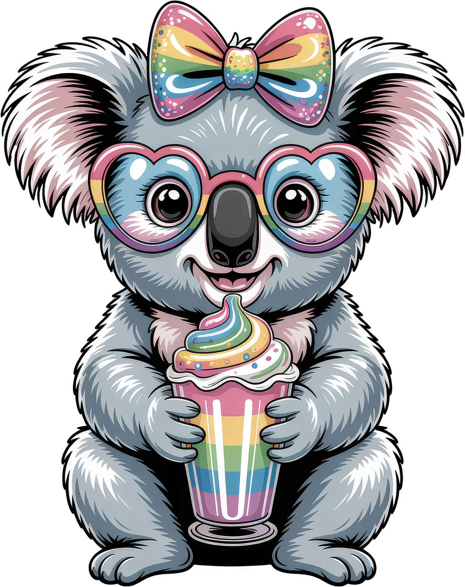 Cute Koala Rainbow Bow and Glasses