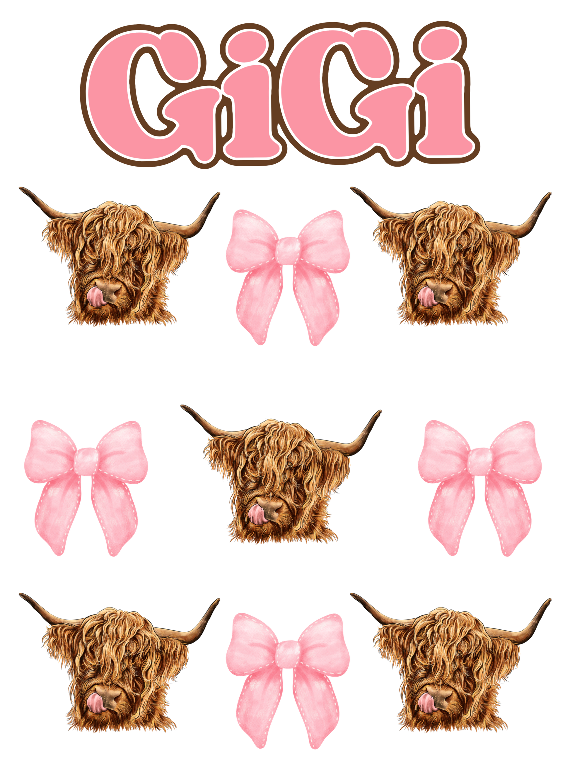 Pink Bows & Highland Cows - Gigi, Grandma, Mama, Mamaw, Yaya, Mimi, Nana