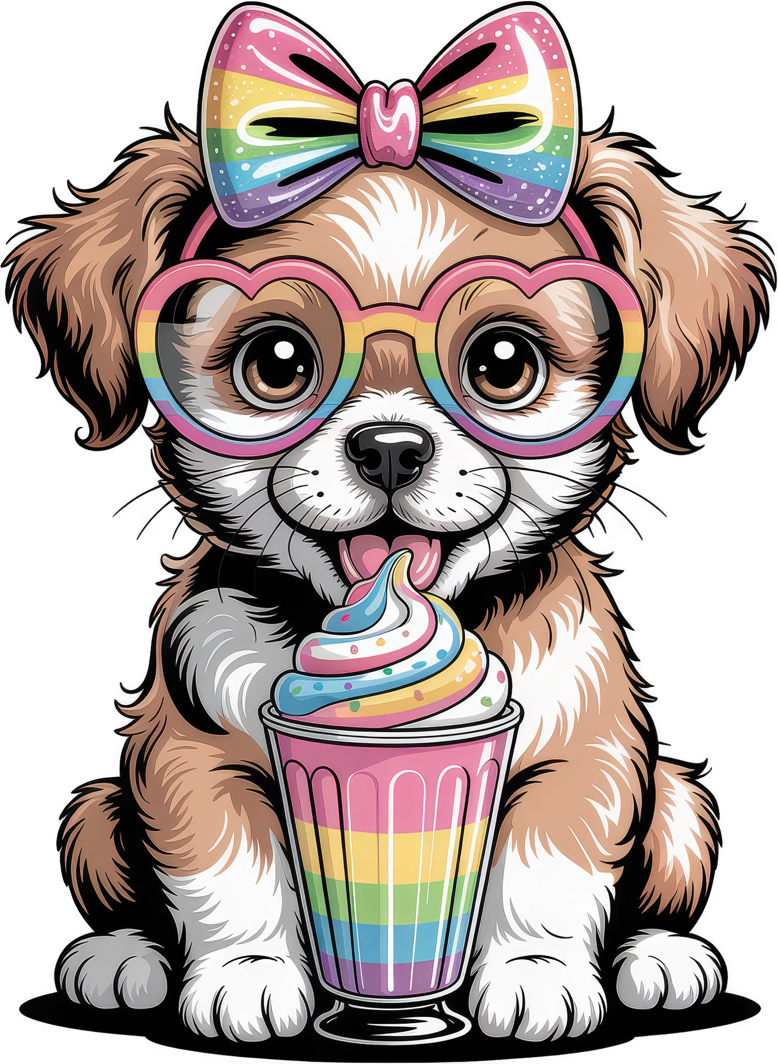 Puppy Dog Rainbow Bow and Glasses